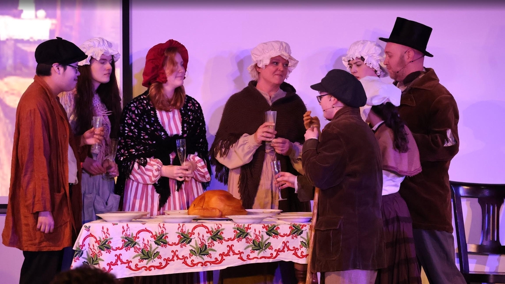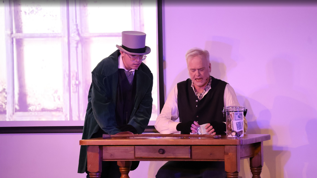 Zijn kantoor bestaat uit een oud vervallen pandje met een nog ouder gammel bureau, de enige kachel die er staat, mag niet branden, dat kost te veel kolen. Zijn klerk, Cratchit, heeft het maar moeilijk, in de kou werken voor een vrek, die je uitbuit en uitscheld. Zelfs op kerstavond mag hij niet eens een uurtje eerder naar huis…tenzij hij dat uurtje na kerst weer inhaalt…